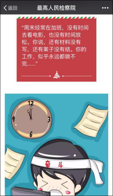 12月25日,最高人民检察院官方微信“最高人民检察院”发布“【圣诞节】检察官收到一封家书,瞬间就泪奔了……”,结合圣诞节热门,与下辖机关联动发声,以漫画家书的方式叙述那些节日仍坚守岗位的检察官的故事。
