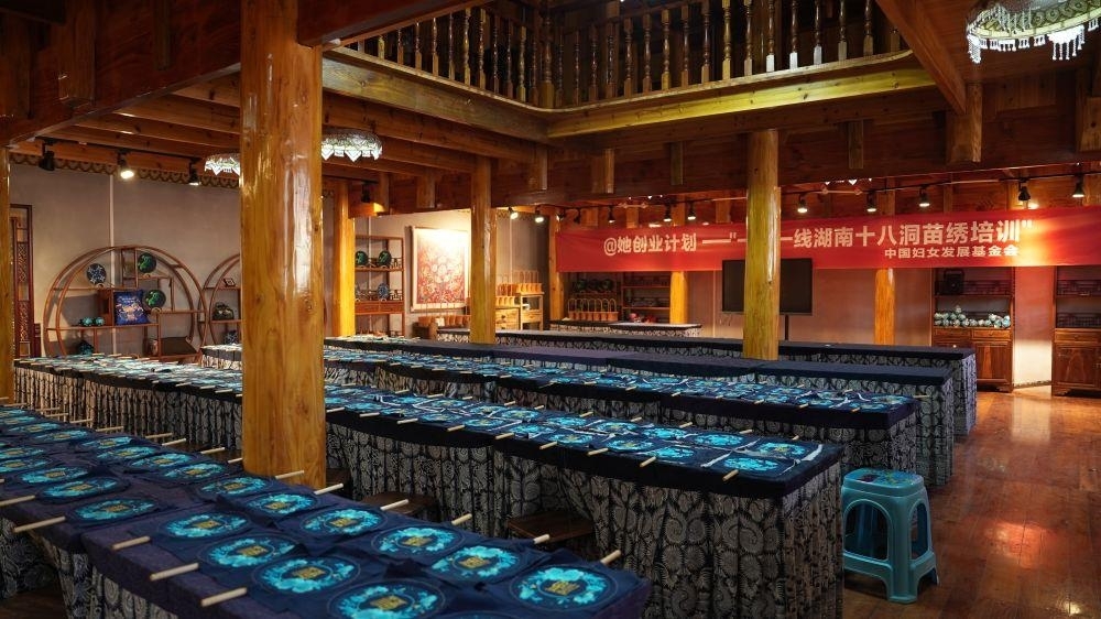 她地点的马鞍村“十八洞片区苗绣村庄复兴演示基地”采纳“协作社+公司”形式,将传统纹样融入现代审美,开发了服饰、文创等各种类型的产品。近年来,基地又与故宫博物院及网络红人等协作,活跃开辟北美、非洲出售运营途径,带动周边562名和吴满金相同的苗族妇女完成“带着娃、绣着花,养活自己又养家”。