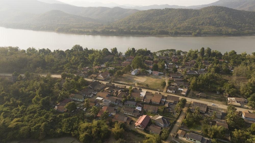老挝琅勃拉邦省琅勃拉邦市听松村全貌(无人机相片)。新华社发 杜大鹏 摄